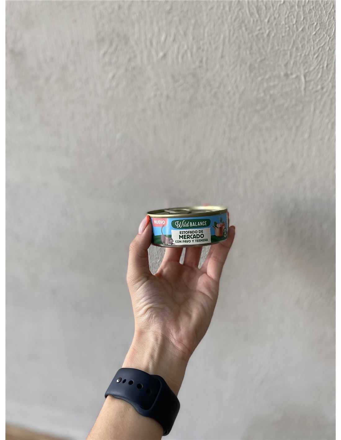 Esta lata de comida cocinada para gato de estofado de mercado con pavo y ternera cuenta con la sutileza de la carne del pavo junto con el delicioso sabor de la ternera que se entrelazan en una receta donde el hierro, los minerales y la vitamina B son los protagonistas.