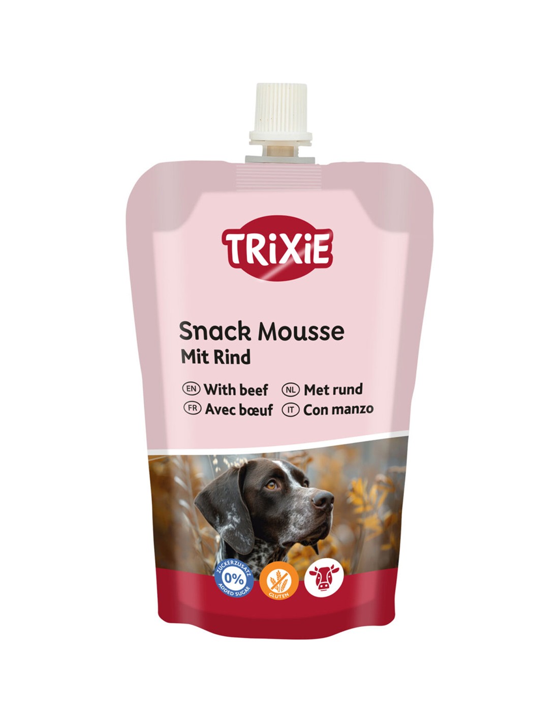Alimento complementario para perros. Carnes y subproductos animales 22% carne de vacuno, fibra de patata, proteína de la leche, proteína de ave, perejil. Sin gluten y sin azúcar añadido