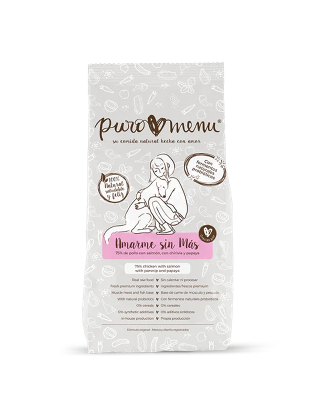 Alimento completo y equilibrado para perros de cualquier raza y edad. 80% pollo con salmón, chirivía, coco y papaya. Los fermentos vegetales proporcionan probióticos, un nivel incrementado de micronutrientes, conservación y un sabor irresistible. 100% natural de verdad, 0% aditivos sintéticos, 0% cereales.