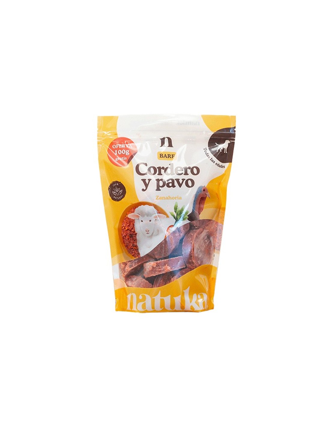 Descubre el menú BARF de cordero, pavo y zanahoria, una combinación perfecta para la nutrición natural de tu perro. Este menú ofrece carne de cordero y pavo crudas, enriquecidas con zanahorias frescas para un extra de sabor y nutrientes. La carne de cordero es una excelente fuente de proteínas, hierro y zinc, esenciales para la energía y salud de tu mascota. Por otro lado, la carne de pavo es baja en grasas y rica en selenio y vitamina B6, fundamentales para el bienestar general y el sistema inmunológico de tu perro. Sin conservantes ni aditivos, garantizando una alimentación completamente natural y saludable.